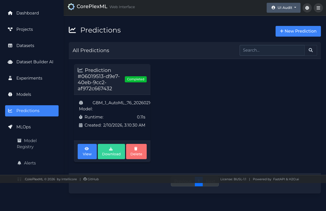 Prediction UI for single and batch inference.