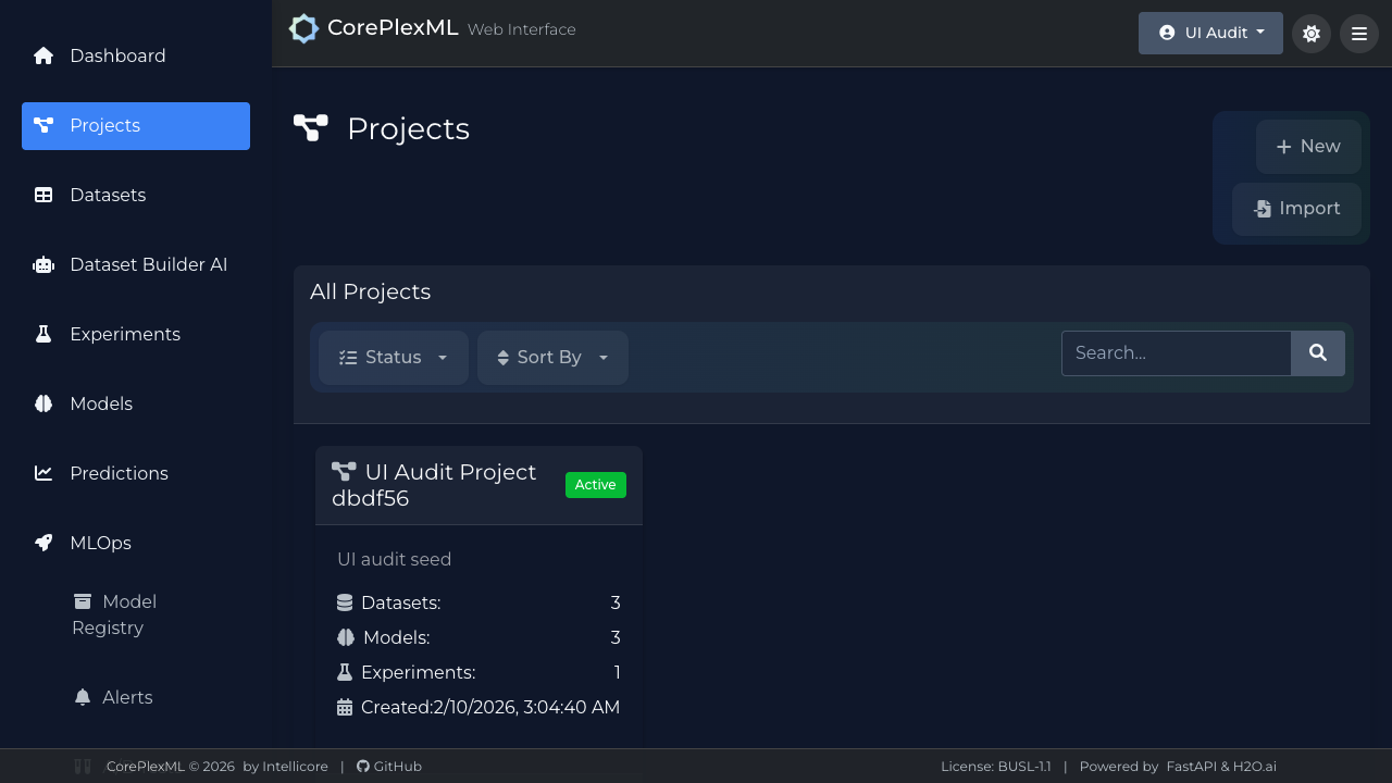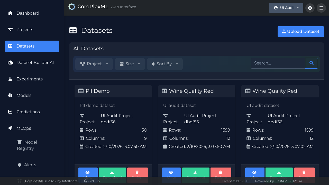 Crear proyectos, subir datasets y validar integridad de datos antes del modelado.